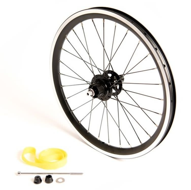 Brompton's 16-inch Superlight Rear Wheel is ideal for picking up speed as well as casual city riding for the daily commute or a day of exploration. Take advantage of the Brompton folding mechanism and transport your Brompton with ease with a Superlight Wheel. Fold in under 20 seconds, lift onto trains and buses, or roll into the office without the added weight of hefty wheels. Despite the lightweight design, this Rear Wheel for P Line and T Line offers excellent overall balance and stability for your Brompton, for a comfortable and smooth ride.