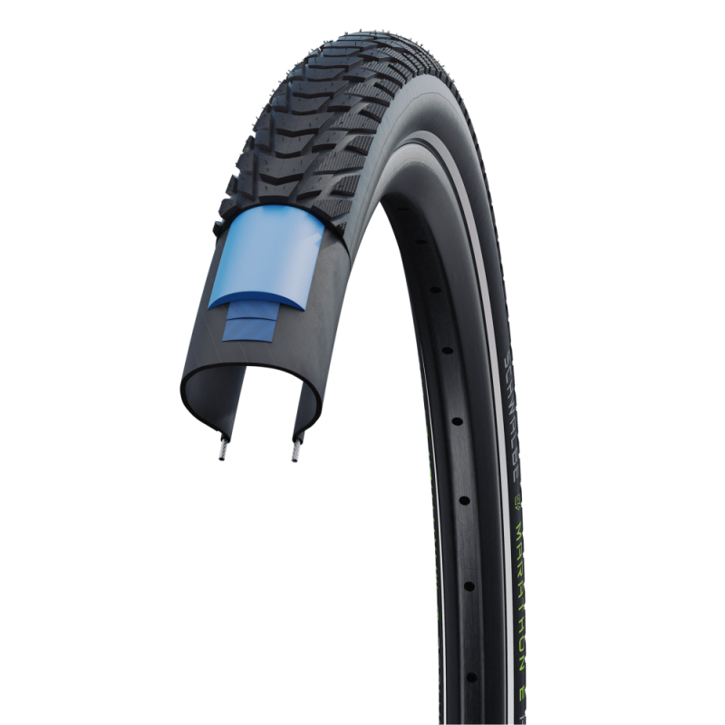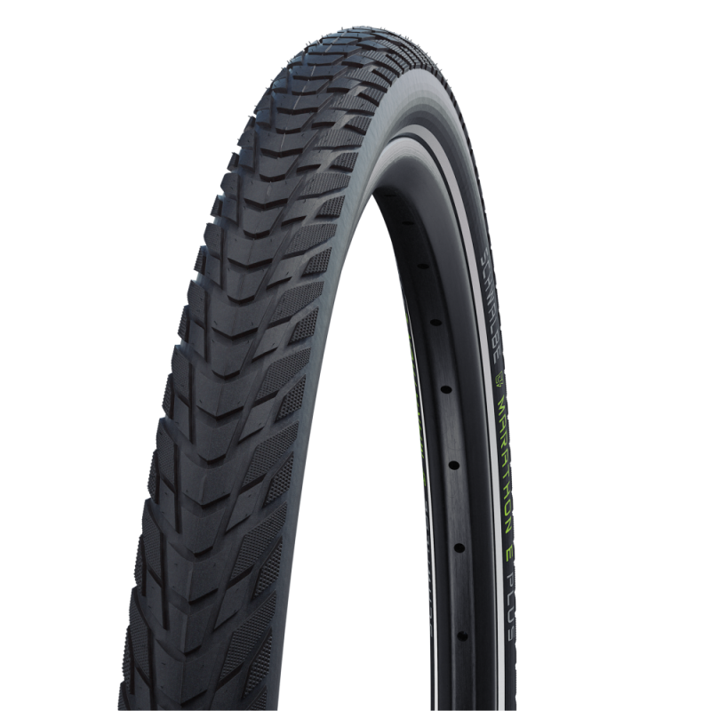 FLAT-LESS ESPECIALLY FOR E-BIKES. Maximum riding safety at high speeds and on long tours. Highest Marathon quality tires refined for the special demands of an E-Bike.