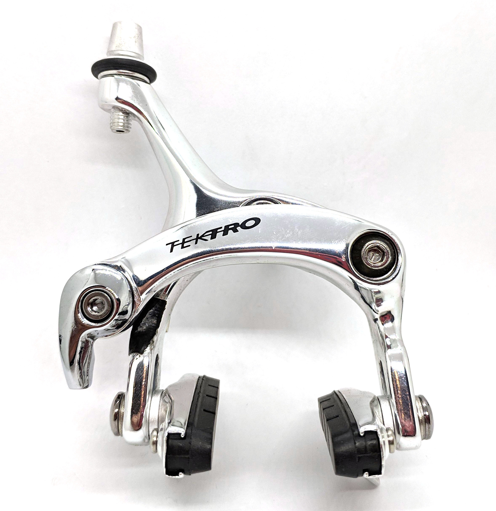 The Tektro 423A is a dual-pivot caliper road brake, often featured as OEM equipment (e.g., on older Cannondale or Jamis road bikes). It is designed for road racing or fitness bikes using recessed mounting hardware, offering enhanced stopping power through its dual-pivot design.
