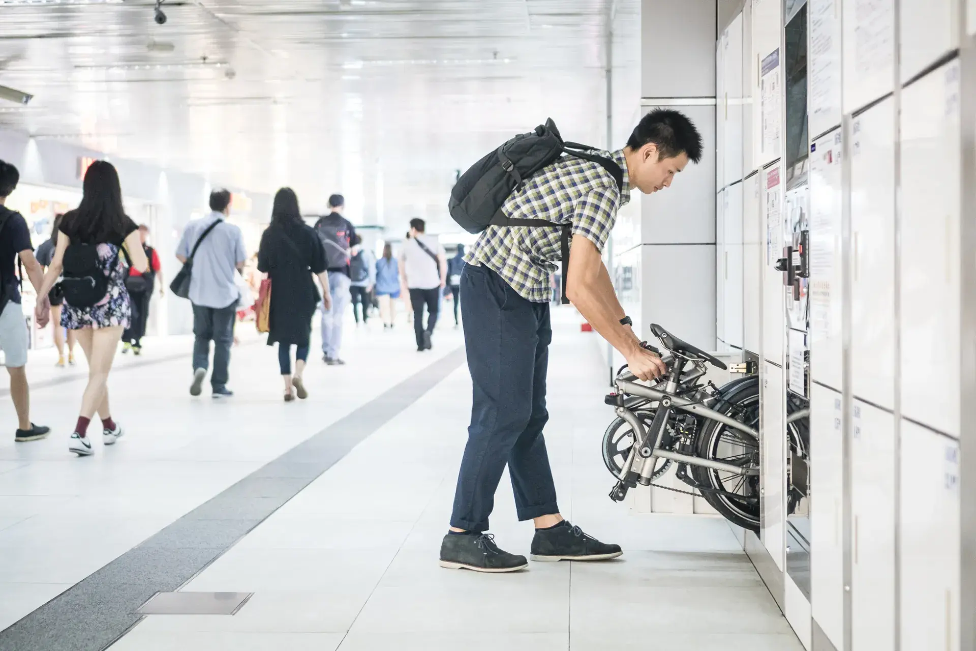 The BYB isn't just a folding bike—it's a whole new way to fold a bike. It's 30% smaller than traditional 20" folding bikes, and folds small and slim enough to fit conveniently into lockers, closets, or any narrow space.