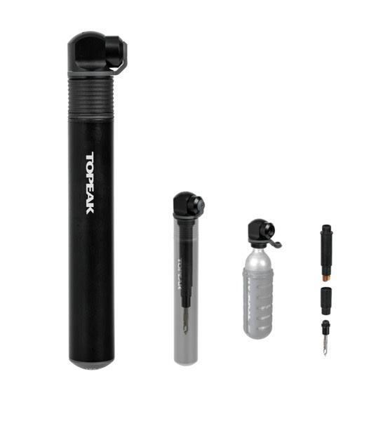 - Multi-function mini pump with integrated CO2 head and tubeless repair kit inside